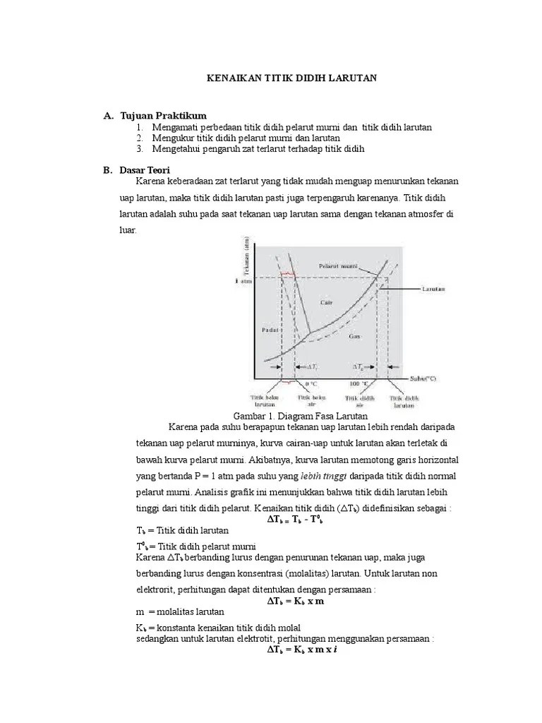 Kenaikan titik didih dan penurunan titik beku 1. Laporan praktikum kenaikan titik didih. Titik beku adalah suhu dimana tekanan uap cairan sama . Laporan kenaikan titik didih larutan laporan praktikum kenaikan titik didih larutan laporan praktikum kenaikan titik didih larutan pdf . Laporan praktikum larutan "kenaikan titik didih " disusun oleh: